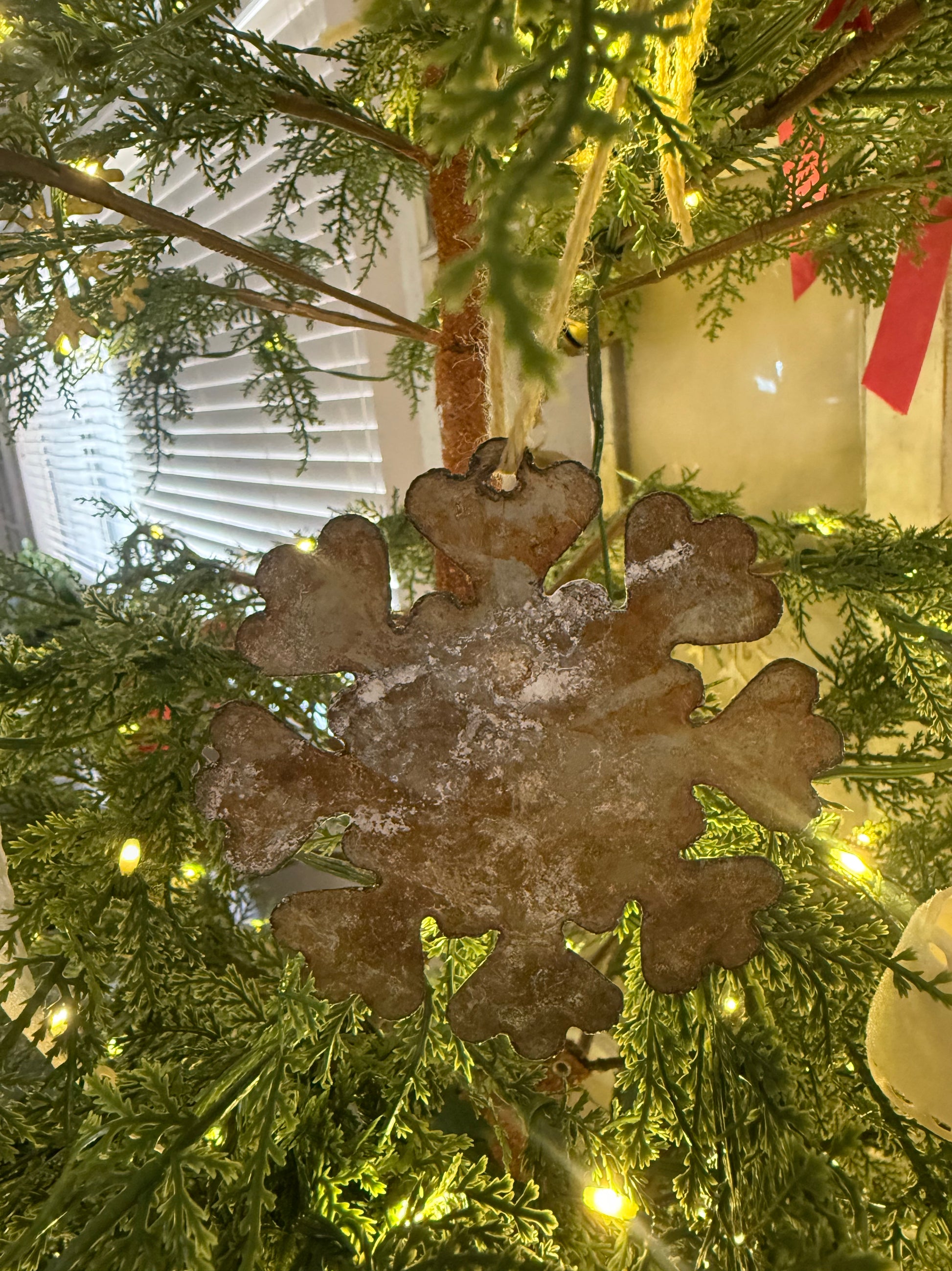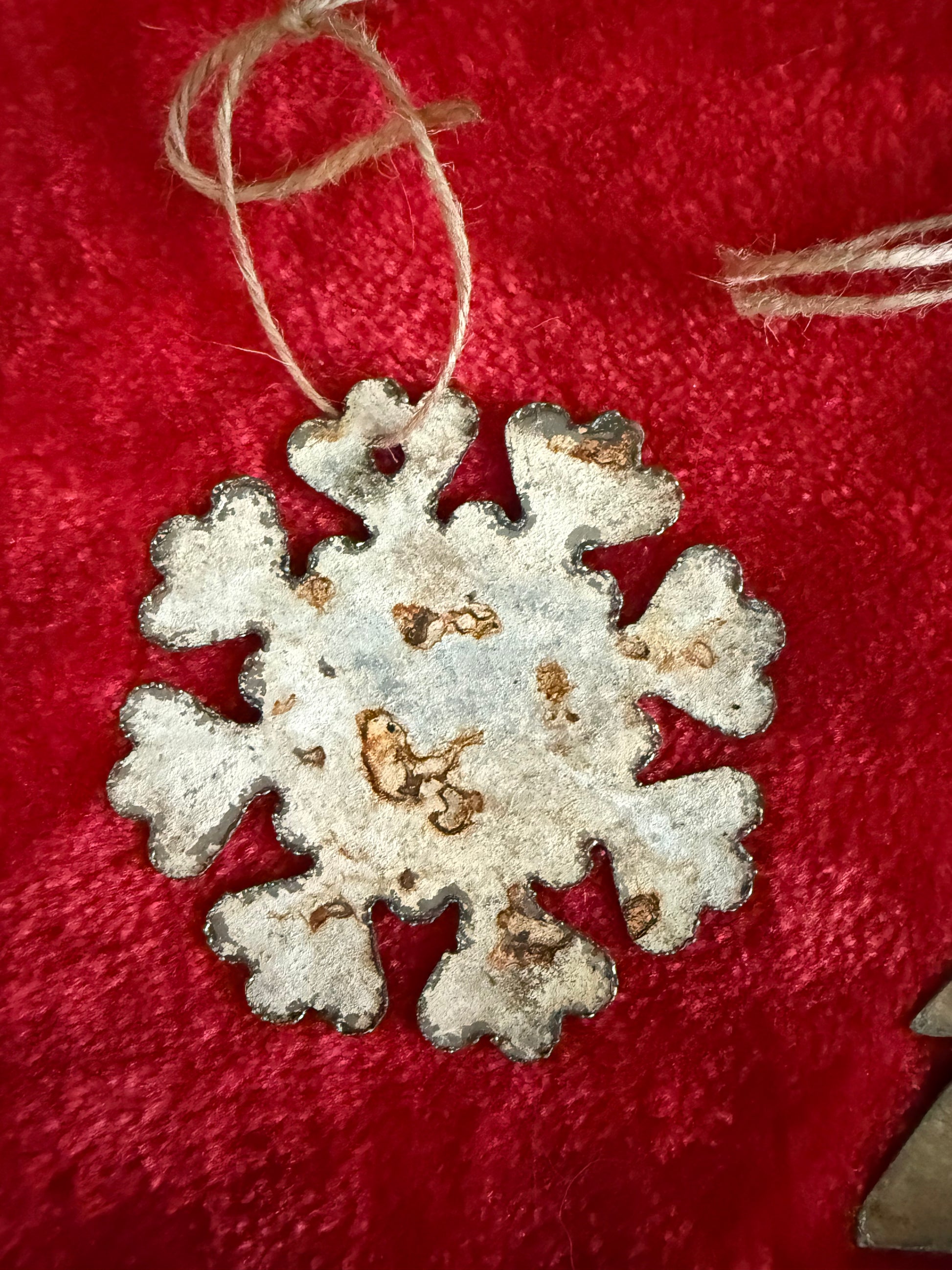 Handmade rustic metal Christmas ornaments. Each ornament is unique and different. All come tied with burlap ready to hang on your Christmas tree!