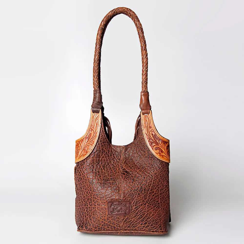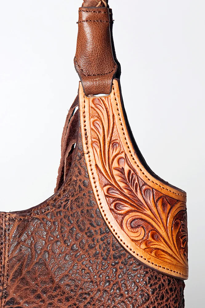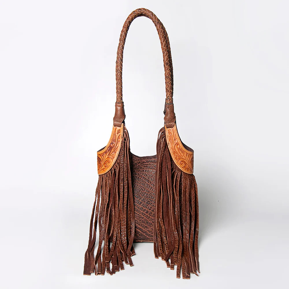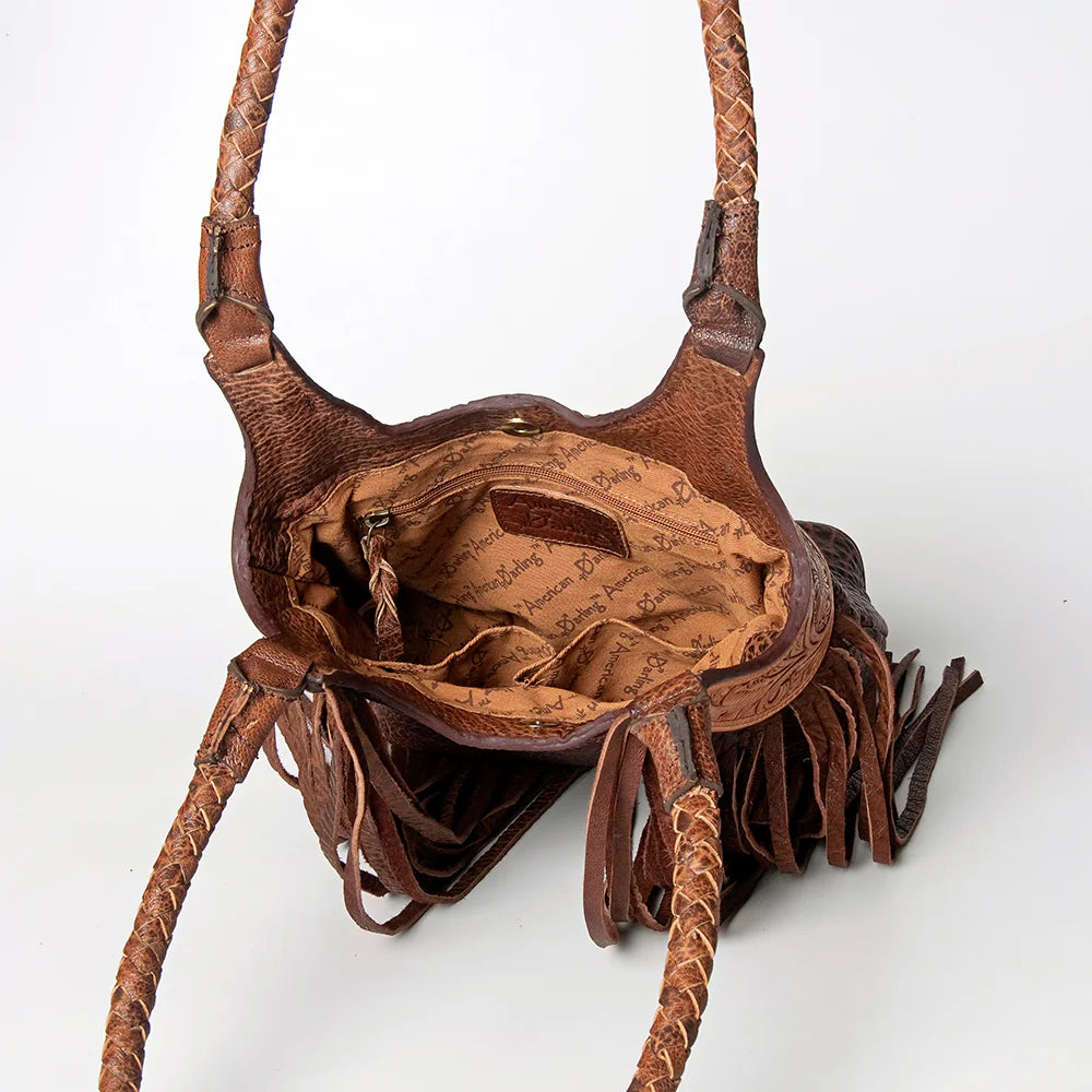 The Southern Belle is classy and sophisticated with its gorgeous genuine leather fringe, hand tooled sides, and detailed braided straps this bag is the perfect statement piece for any outfit.